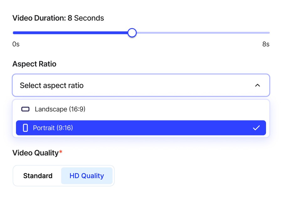 Set the essential details for your video. You can adjust the video duration, select the perfect aspect ratio for any platform, and also the video quality from the advanced settings.
